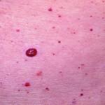 These are bright red vascular blemishes which lie just under the surface of the skin. They are dome-shaped or slightly raised and are frequently found on the midriff, back or front but also on the face. Most people aged over 30 have at least one and they are even more common in men than women. some people have dozens. They are usually approximately 2mm in size but can be smaller or as large as a thumbnail. The larger they become the more raised from the surface of the skin they appear.